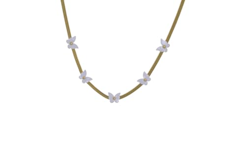 Generic - Stainless Steel Herringbone Chain Necklace with Butterfly Accents for Women - Gold