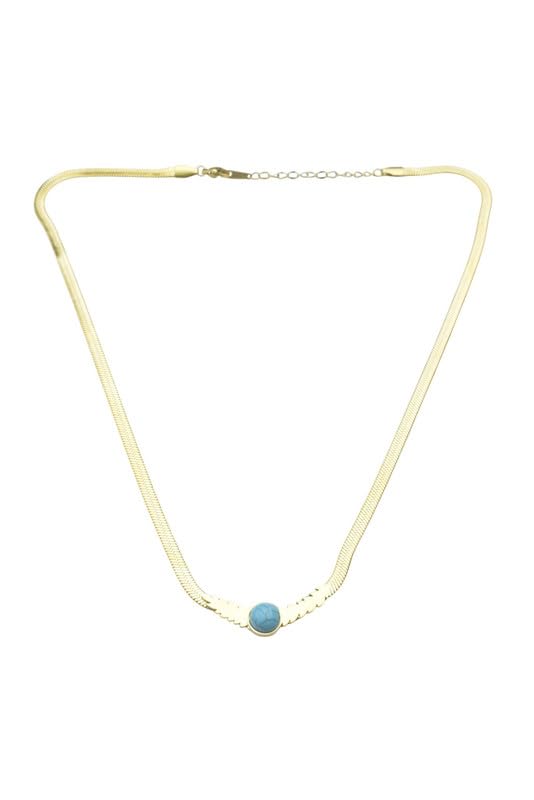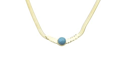 Generic - عقد متعرج من الستانلس ستيل مع حجر ازرق مركزي للنساء - ذهبي وازرق
