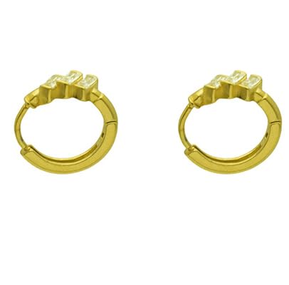 Generic - Stainless Steel Huggie Hoop Earrings with Baguette Stones for Women - Gold