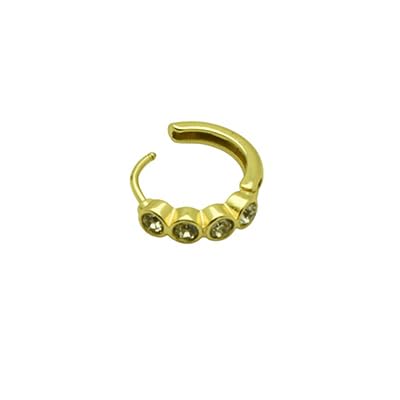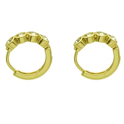 Generic - Stainless Steel Huggie Hoop Earrings with Bezel-Set Stones for Women - Gold
