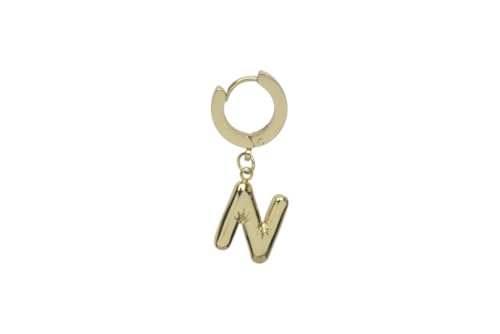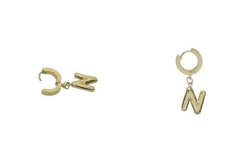 Generic - Stainless Steel Huggie Hoop Earrings with Letter 'N' Charm for Women - Gold