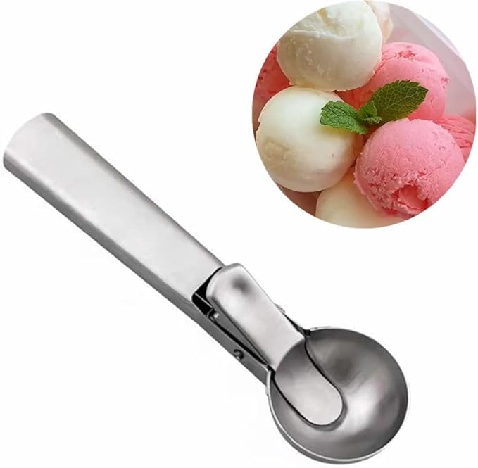 Generic - Stainless Steel Ice Cream Scoop With Trigger Release, Large Cookie Scoop for Baking, Melon Baller, Meatball, Cupcake Portion Scoop (Silver)