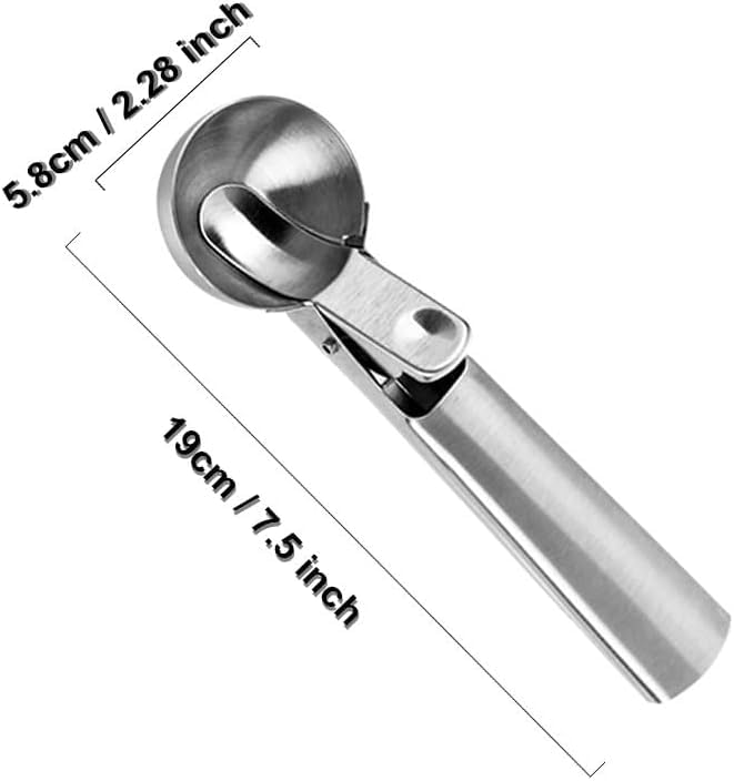 - 【Material】Our Ice Cream Scoop with Trigger is made of food grade stainless steel material, durable to use, not easy to deform or break. The size of Cookie Dough Scoop is 19cm x 5.8cm / 7.5 inch x 2.28 inch.