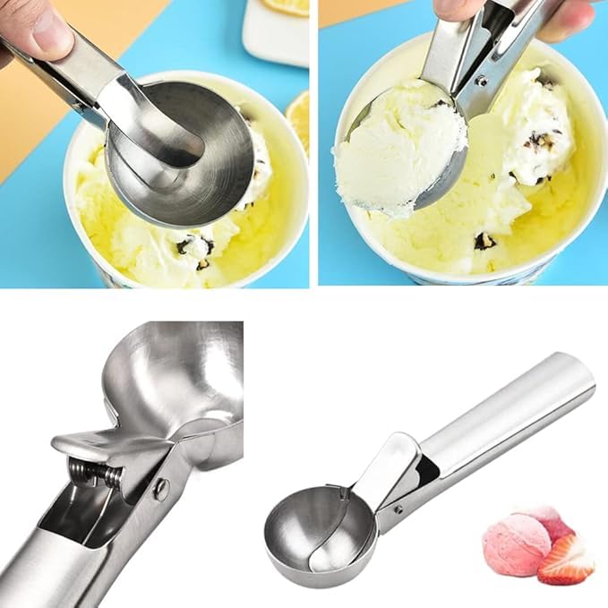 - 【Release lever】This ice cream scoop comes equipped with a scoop release lever to easily scoop out the ice cream. The Ice Cream Scoop can provides accurate portions of ingredients. With this tool help, we can easily make beautiful cookie, cupcake, sorbet or ice cream, do not require great hand strength.