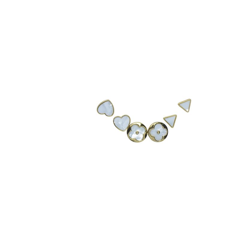 Generic - Stainless Steel Inlay Multi-Shape Stud Earrings, 6 Pairs For Women