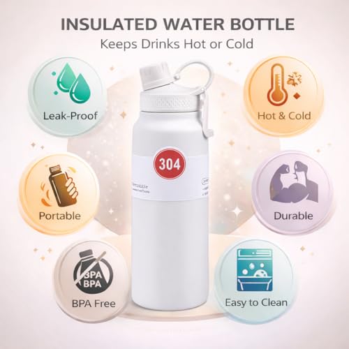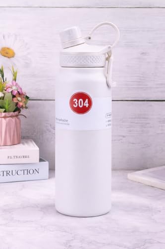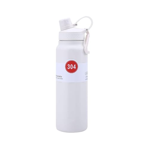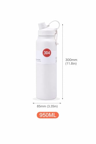 Generic - Stainless Steel Insulated Water Bottle with Straw & Handle, Double Wall Vacuum, BPA Free, Leak Proof Sports Bottle – 950ml (White)