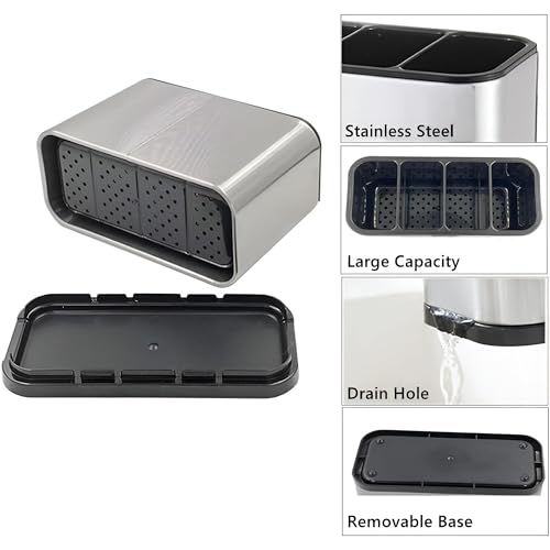 Generic - حامل مطبخ من الفولاذ المقاوم للصدأ، منظم صلب للملاعق والشوك والسكاكين مع فتحات تصريف تساعد على الحفاظ على الأدوات جافة