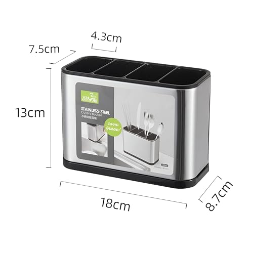 - يتميز حامل الأدوات من الفولاذ المقاوم للصدأ بأربع مساحات منفصلة لتنظيم المعالق والشوك والسكاكين والمغارف ومضارب الخفق اليدوية وأدوات المطبخ الأخرى بشكل مرتب، مما يتيح وصولًا سريعًا ويضمن سطح مطبخ خالي من الفوضى.