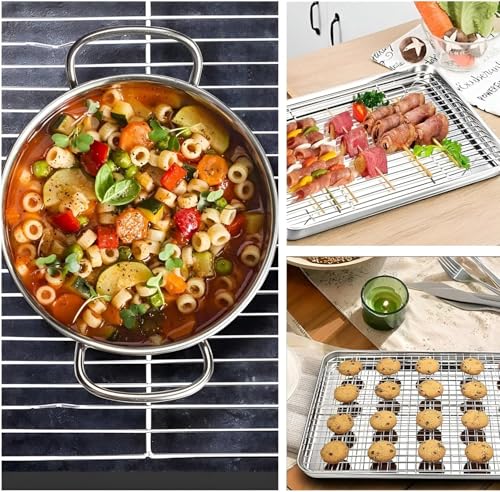 - 【VERSATILE TOOL】The mesh combines multiple functions including baking cooling, filtering pans, grilling inside the oven, reducing the need for multiple tools and enhancing kitchen organization, and allowing you to easily and efficiently prepare various recipes while maintaining the quality of final results for every meal