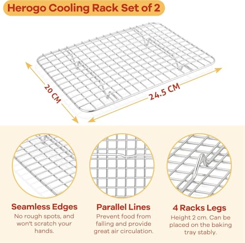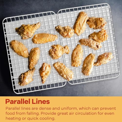- 【QUICK & EVEN COOLDING】The mesh is designed to allow air to evenly circulate around all sides of the bakery, ensuring that the cakes and cookies are cooled fast and efficiently preventing moisture from accumulating under the food, enhancing the perfect consistency and making each piece crunchy and ready to serve professionally and attractive.