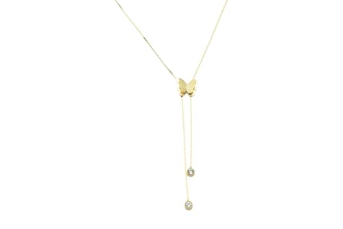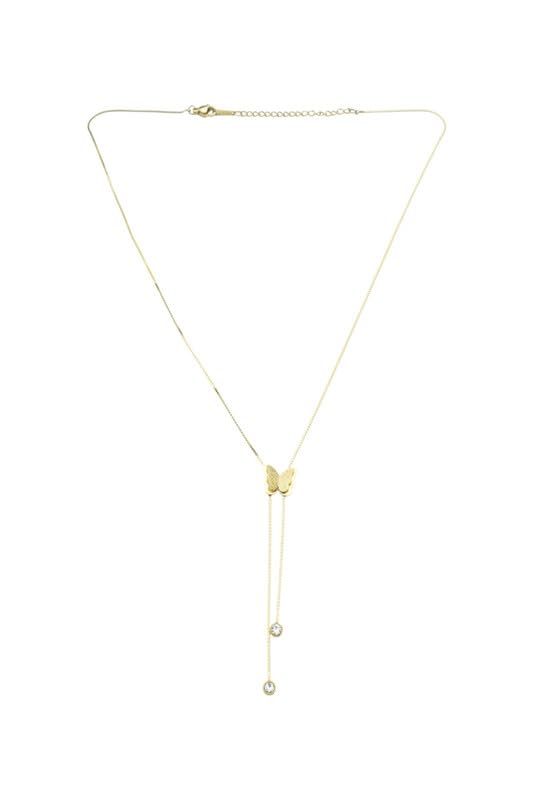 Generic - Stainless Steel Lariat Necklace with Butterfly & Gemstone Accents for Women - Gold