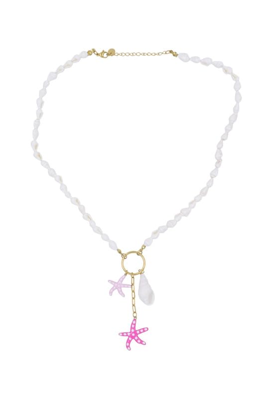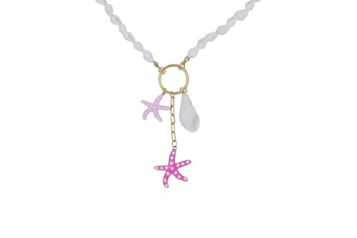 Generic - عقد لاريات من الستانلس ستيل مع دلايات على شكل صدفة ونجم البحر للنساء - ذهبي