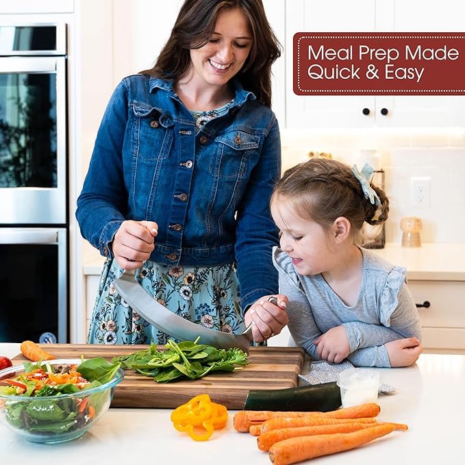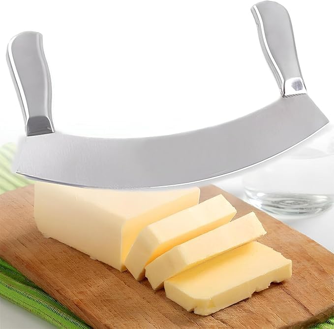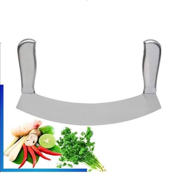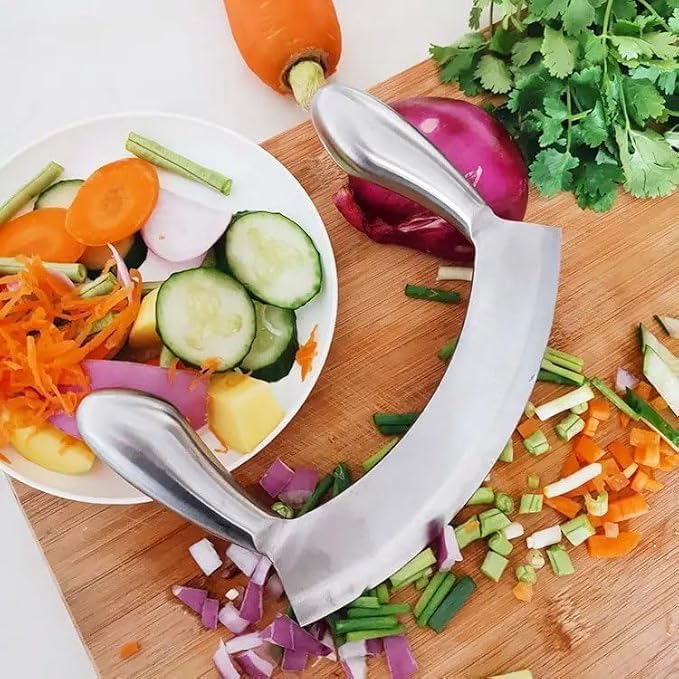Generic - Stainless steel lathe - Stainless steel vegetable and leaf cutter Rocking Knife with Curved Blade, Sharp Blade, Double Handle, Fruit and Vegetable Chopping Knife