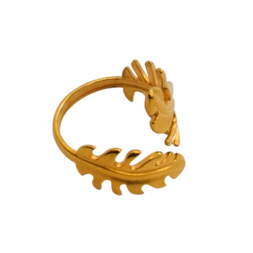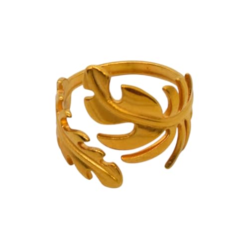 Generic - خاتم للنساء من الستانلس ستيل بتصميم اكليل الغار، مقاس واحد - ذهبي FA300