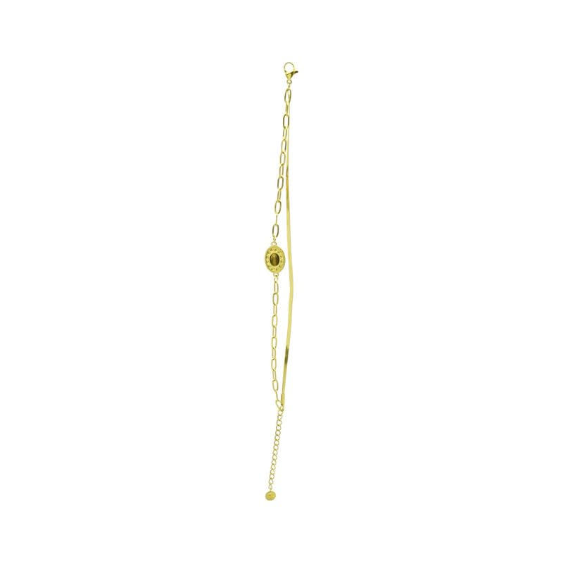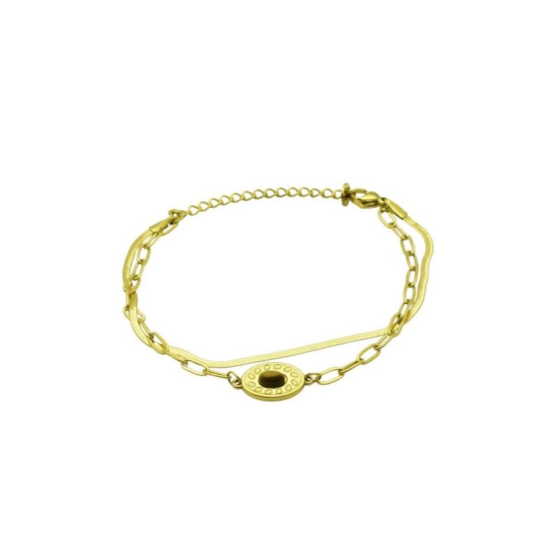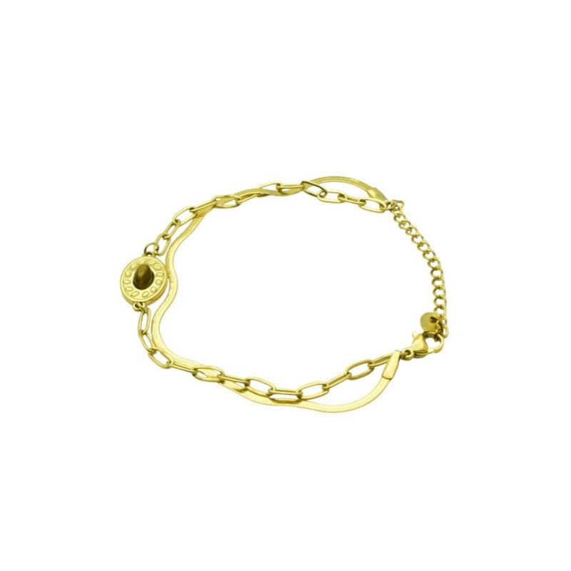 Generic - Stainless Steel Layered Bracelet with Central Stone Charm for Women – Gold