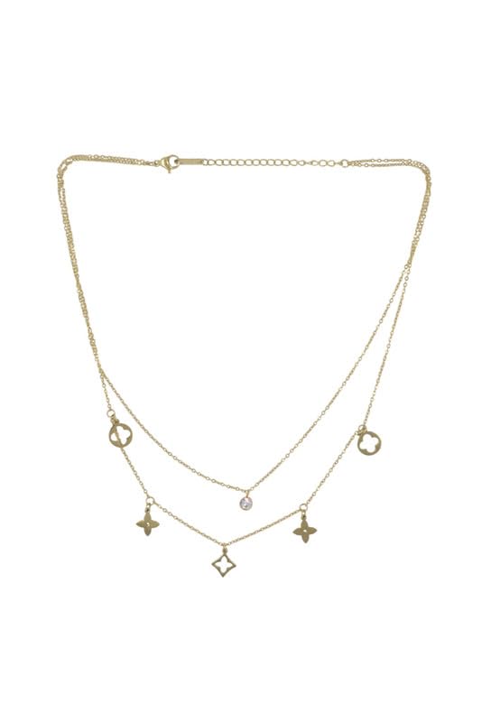 Generic - Stainless Steel Layered Clover and Star Charm Necklace for Women - Gold