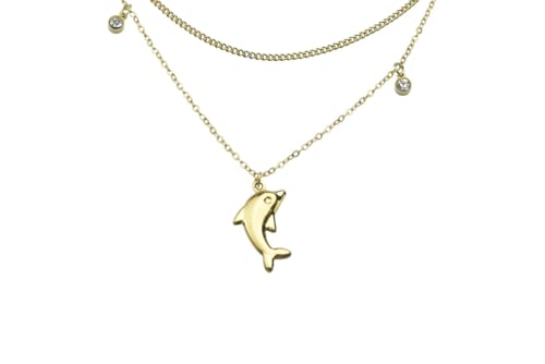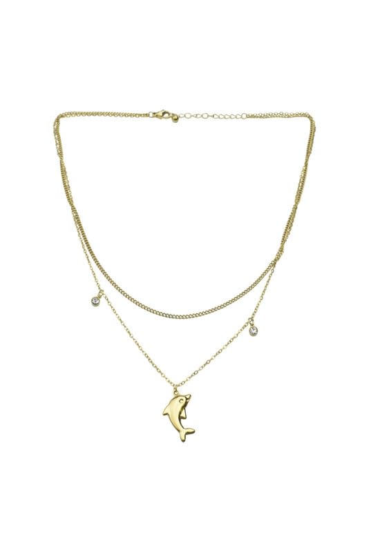 Generic - Stainless Steel Layered Dolphin Necklace for Women - Gold