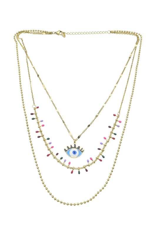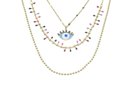 Generic - Stainless Steel Layered Evil Eye & Colorful Charm Necklace for Women - Gold Blue