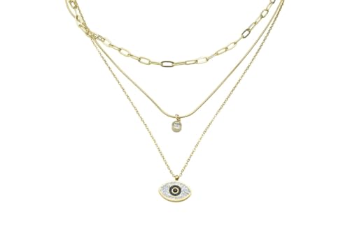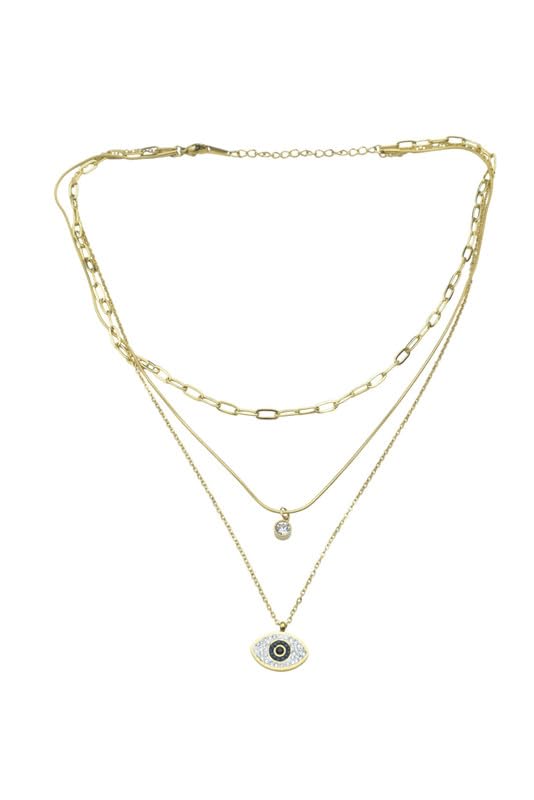Generic - Stainless Steel Layered Necklace with Evil Eye & Crystal Accents for Women - Gold