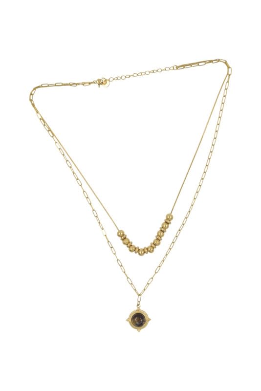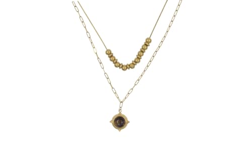 Generic - عقد بقلادة من الستانلس ستيل متعدد الطبقات بحجر دخاني للنساء - ذهبي