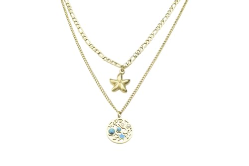 Generic - Stainless Steel Layered Starfish & Nautical Pendant Necklace for Women - Gold Blue