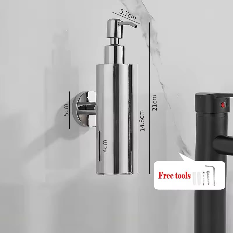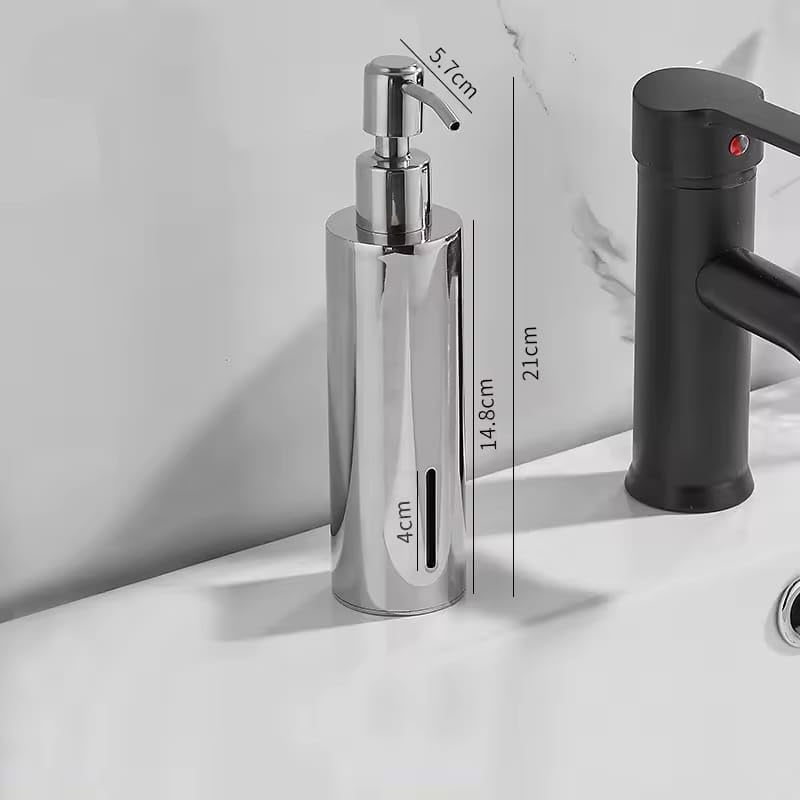 - التصميم: موزع صابون سائل أنيق مصنوع من الفولاذ المقاوم للصدأ بتشطيب فضي مصقول، مثالي للحمامات العصرية
