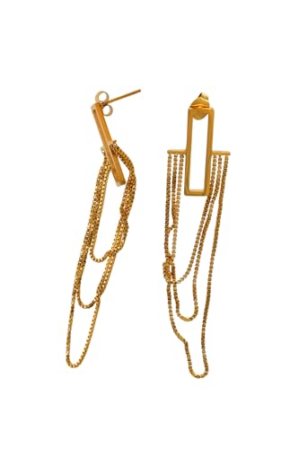 Generic - Stainless Steel Long Multi-Layered Chain Earrings for Women - Gold