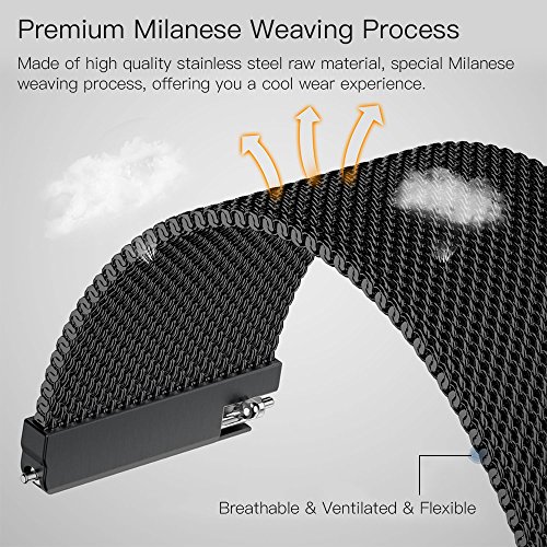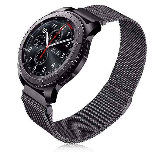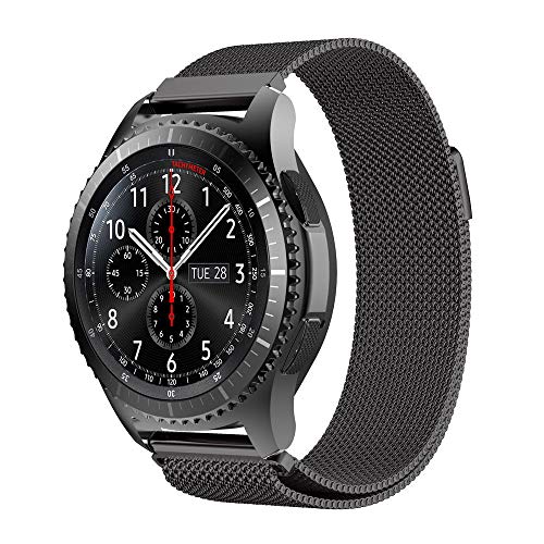 Bikson - Stainless Steel Loop Strap Wrist Band For Smart Watch Samsung Galaxy Watch 46mm / Huawei GT2 / Gear S3 Frontier and Classic/Honor Magic 2 / Fossil - 22mm - Space Black
