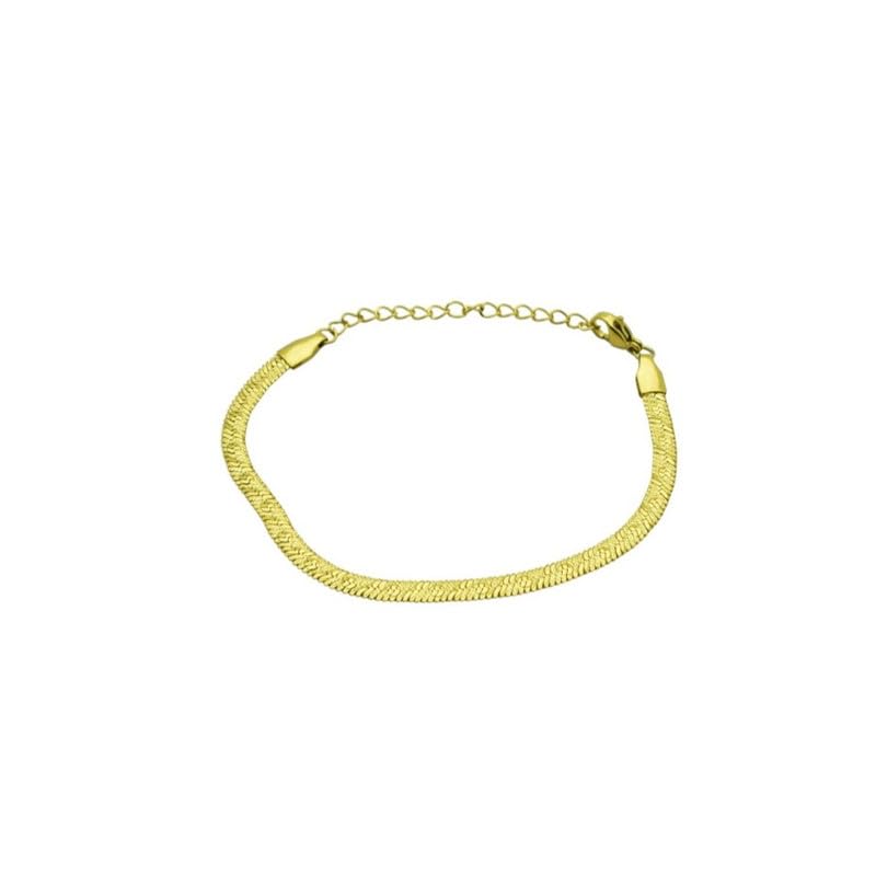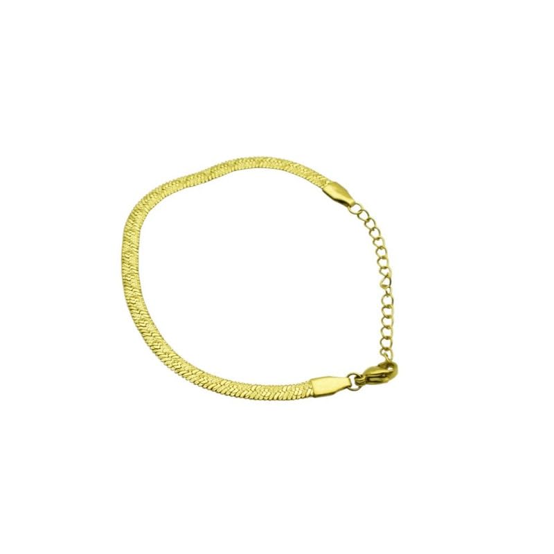Generic - Stainless Steel Medium Flat Herringbone Chain Bracelet for Women – Gold