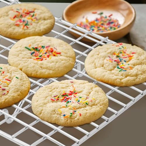 - ✅ 【تهوية فعالة للمخبوزات】 تضمن الشبكة توزيع الهواء بالتساوي أسفل المخبوزات وفوقها مما يساعد على تبريد الكيك والكوكيز بسرعة ويمنع التصاقها بالصواني ليحافظ على ملمسها الهش والطعم الطازج في كل مرة. 🍪