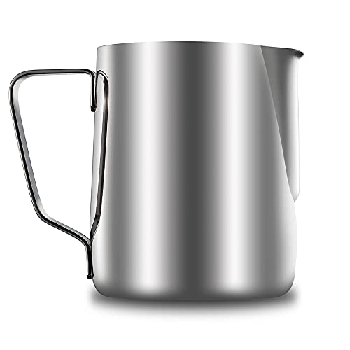 - WIDE RANGE OF USES: The milk frothing pitcher can help you froth or steam milk for lattes; measure liquids; serve milk or cream. This stainless steel milk frothing pitcher is perfect for water, juices, batter mixes, smoothies, and other pour-able item whether hot or cold.