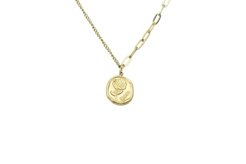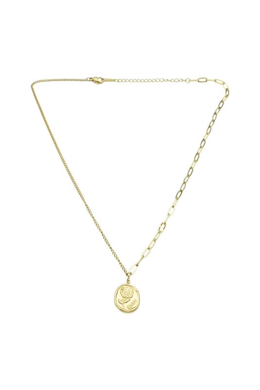 Generic - Stainless Steel Mixed-Chain Necklace with Rose Medallion Pendant for Women - Gold
