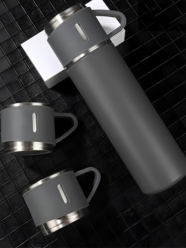 Generic - Stainless steel mug consisting of 3 pieces - three pieces with vacuum insulation that keeps drinks hot or cold, includes two extra cups, leak-resistant design for travel and office, keeps heat for 12