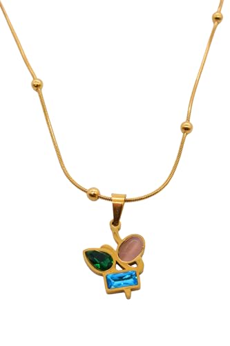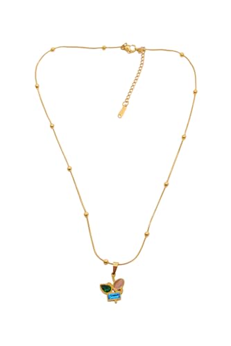 Generic - قلادة بدلاية على شكل فراشة من الاحجار الكريمة متعددة الالوان من الستانلس ستيل للنساء - ذهبي