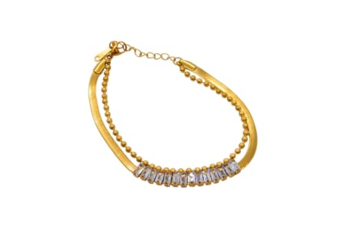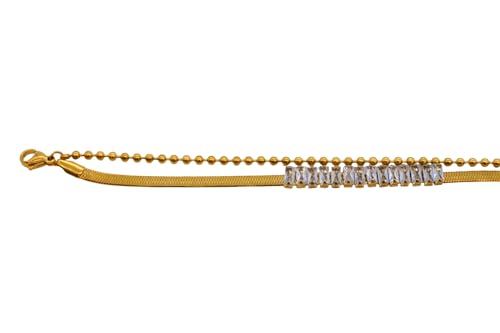 Generic - سوار للنساء من الستانلس ستيل بتصميم متعدد الطبقات مع مشبك لوبستر، مقاس واحد - ذهبي FA139