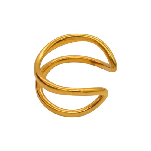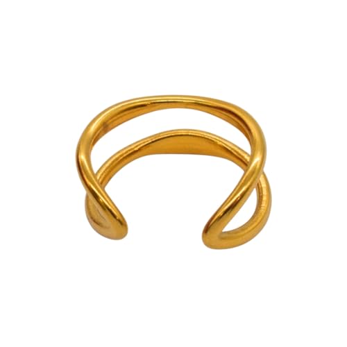 Generic - Stainless Steel Multi-Layered Design Women's Ring, Free Size - Gold FA381