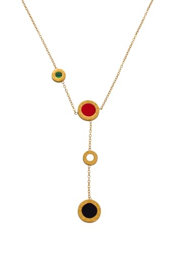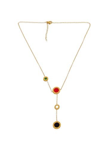 Generic - Stainless Steel Multicolor Circular Accents Necklace For Women - Gold