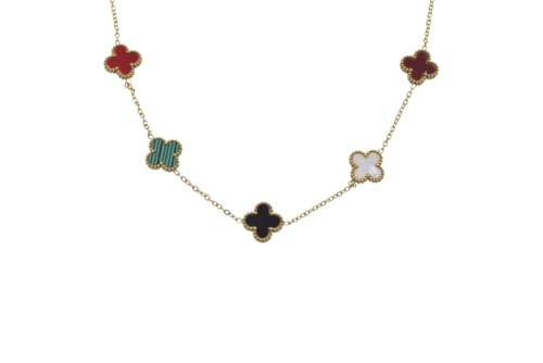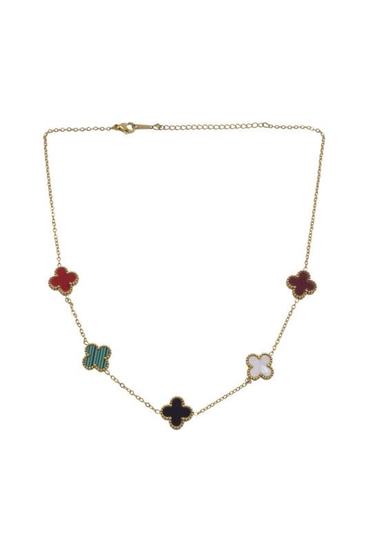 Generic - Stainless Steel Multicolor Clover Station Necklace with Beaded Frame for Women - Multicolor