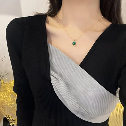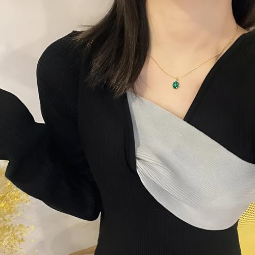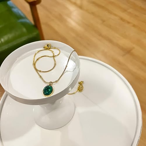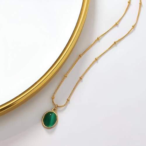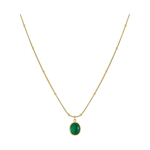 Generic - Stainless Steel Necklace - Elegant Gold-Toned Pendant with Oval Gemstone, Timeless Gift for Women on Anniversaries