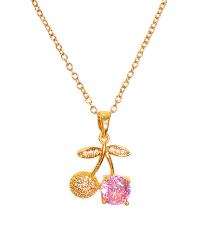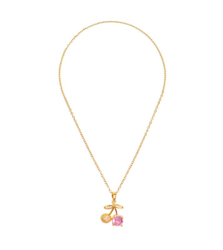 Generic - Stainless Steel Necklace With Cherry Designn For Girls - Gold Purple