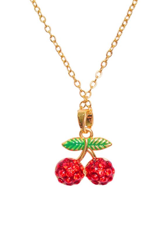 Generic - Stainless Steel Necklace With Cherry Designn For Girls - Gold Red