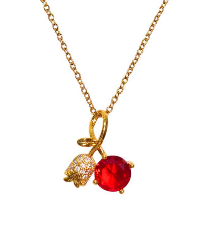 Generic - Stainless Steel Necklace With Cherry Designn For Girls - Gold Red - 7874