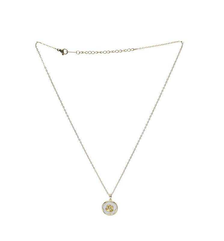 Generic - Stainless Steel Necklace With Circle & Flower Style For Girl - Gold White - 22