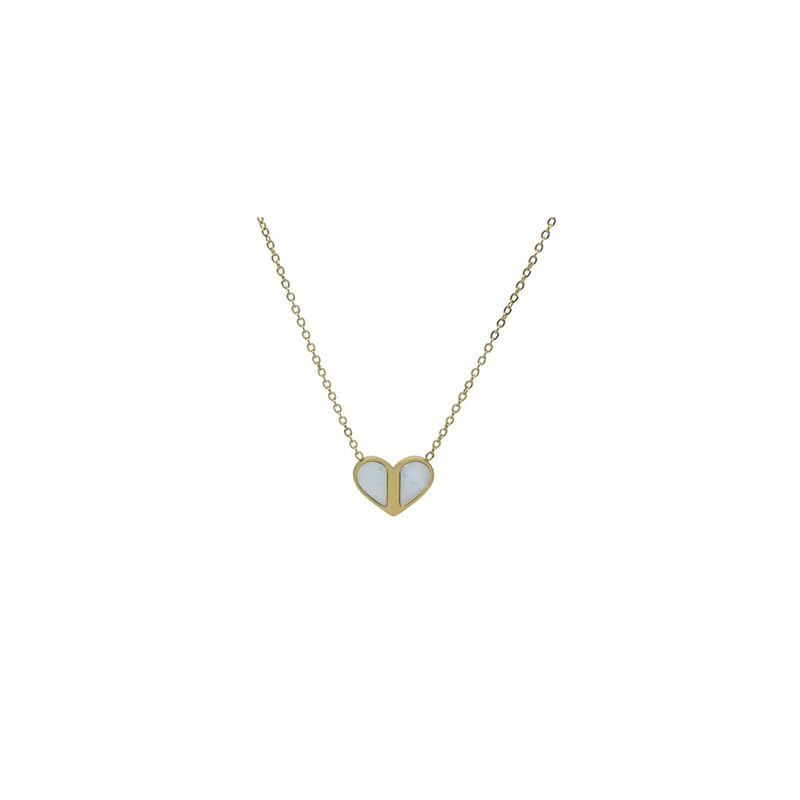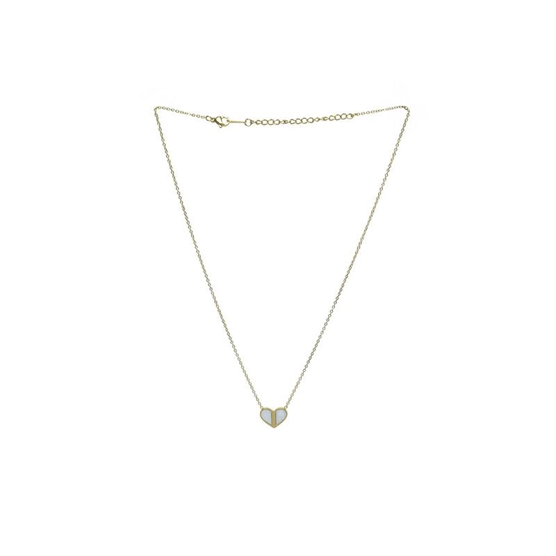 Generic - عقد من الستانلس ستيل بتصميم قلب للبنات - ذهبي وابيض - 204
