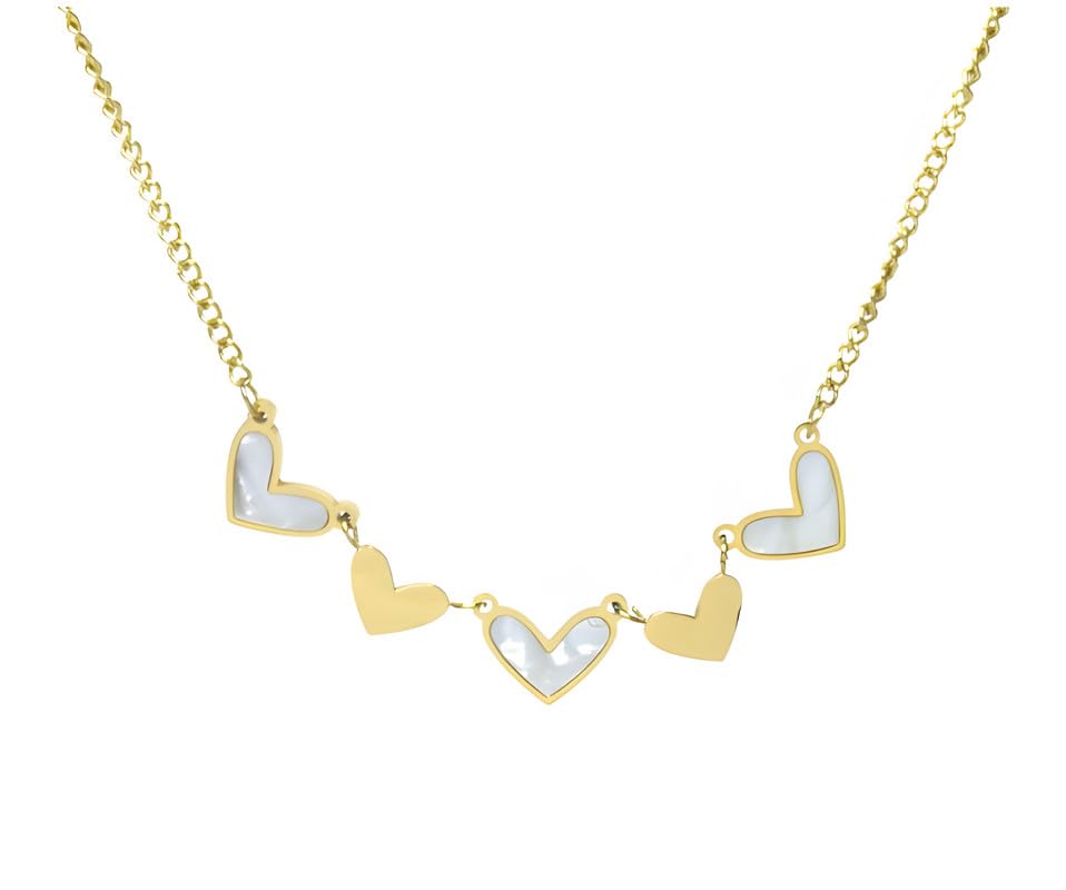 Generic - Stainless Steel Necklace With Heart Design For Girl - Gold White - 73