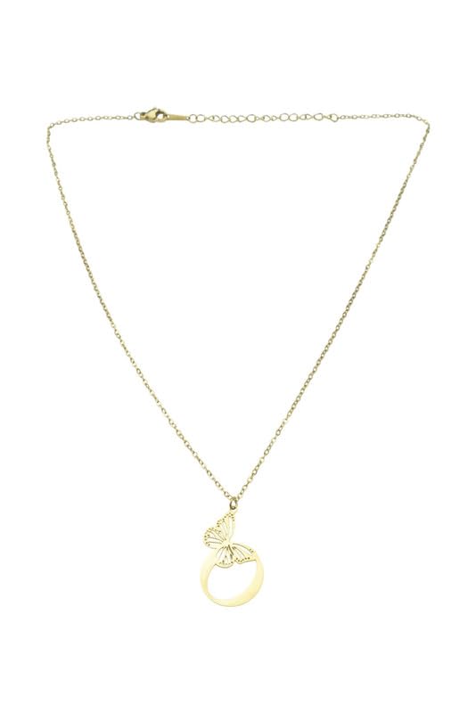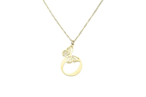 Generic - Stainless Steel Necklace with Initial 'O' & Butterfly Pendant for Women - Gold