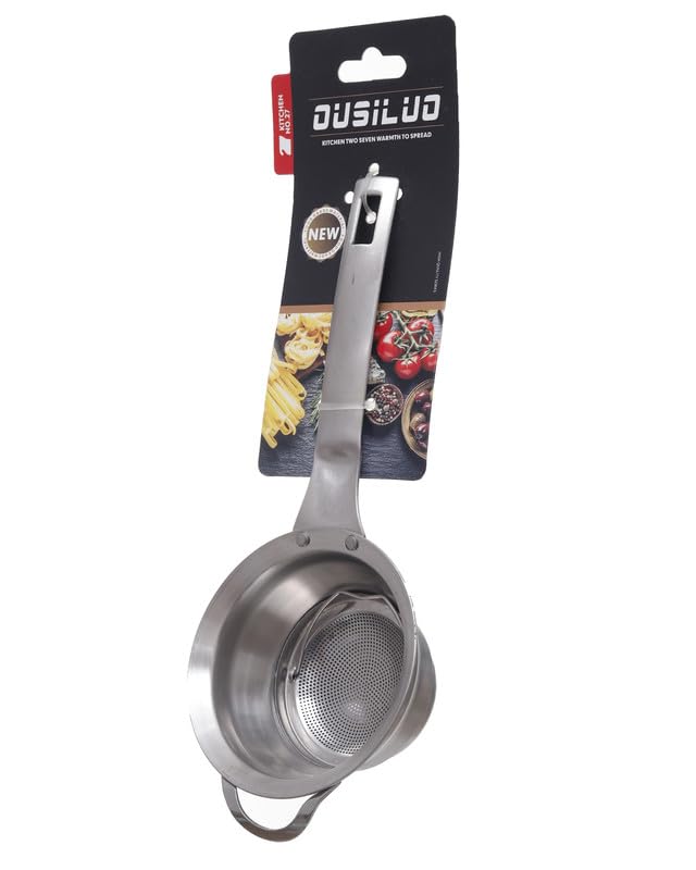 - Ergonomic long handle design prevents hand sliding and provides safety while filtering hot oil.