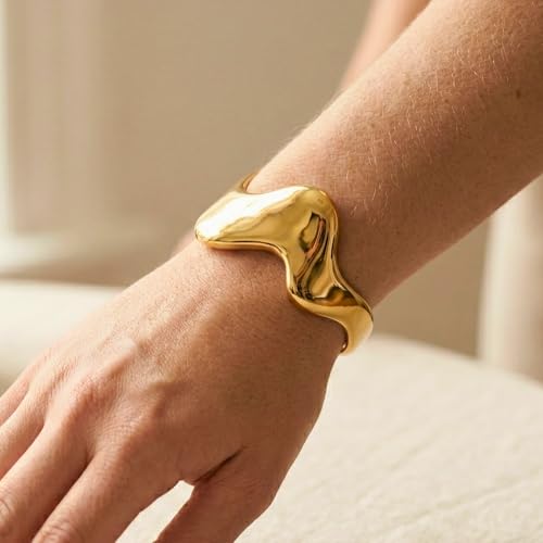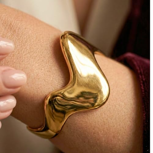Generic - Stainless Steel Open Cuff Bracelets – Adjustable Cuff Bangle – Chic Fashion Curve Design – Rust and Discoloration Resistant – Elegant Women Accessories