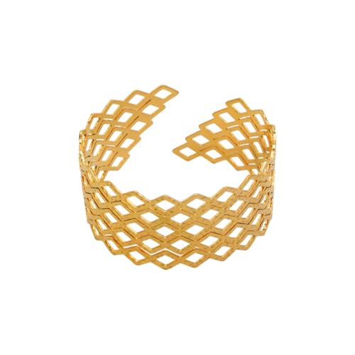 Generic - سوار للنساء من الستانلس ستيل بتصميم مخرم، مقاس واحد - ذهبي FA5