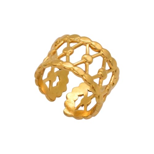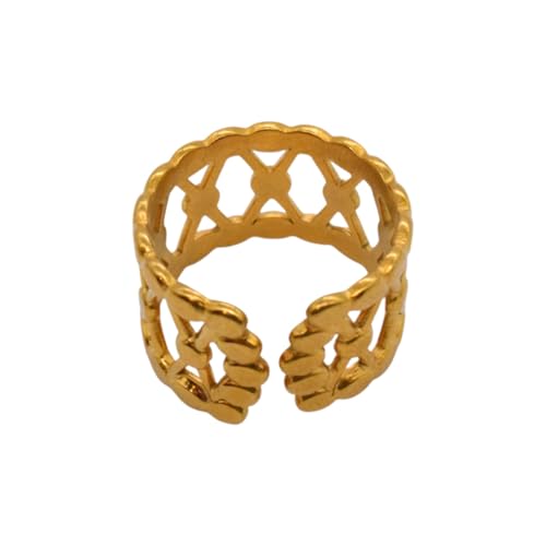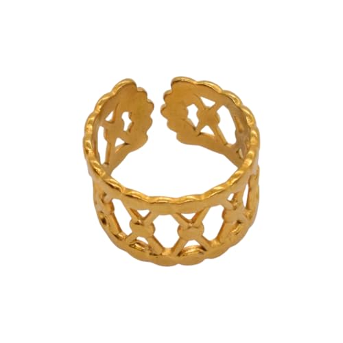 Generic - خاتم للنساء من الستانلس ستيل بتصميم مخرم، مقاس واحد - ذهبي FA346